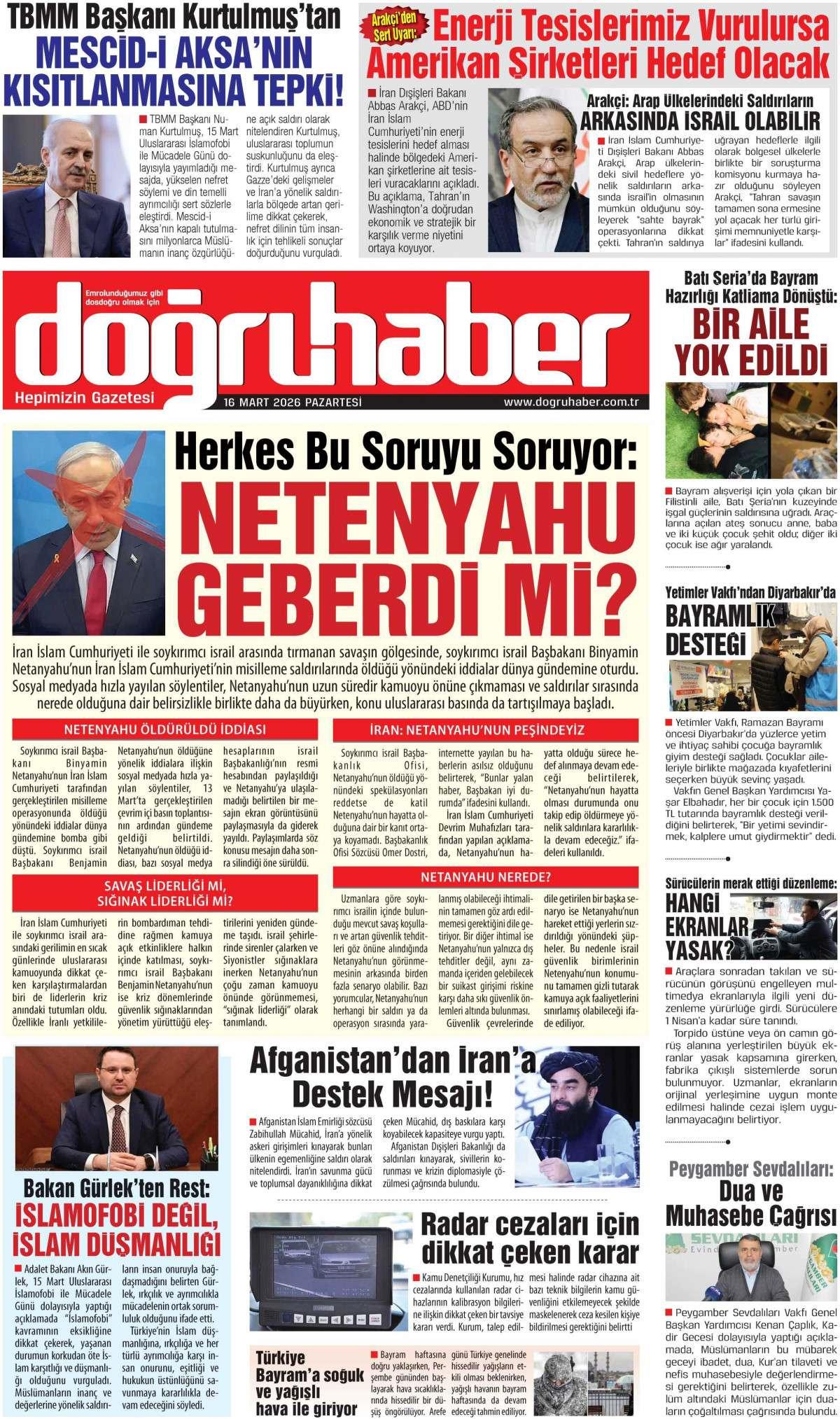 Doğru Haber Gazetesi 17 Mart 2026 Günü Manşeti