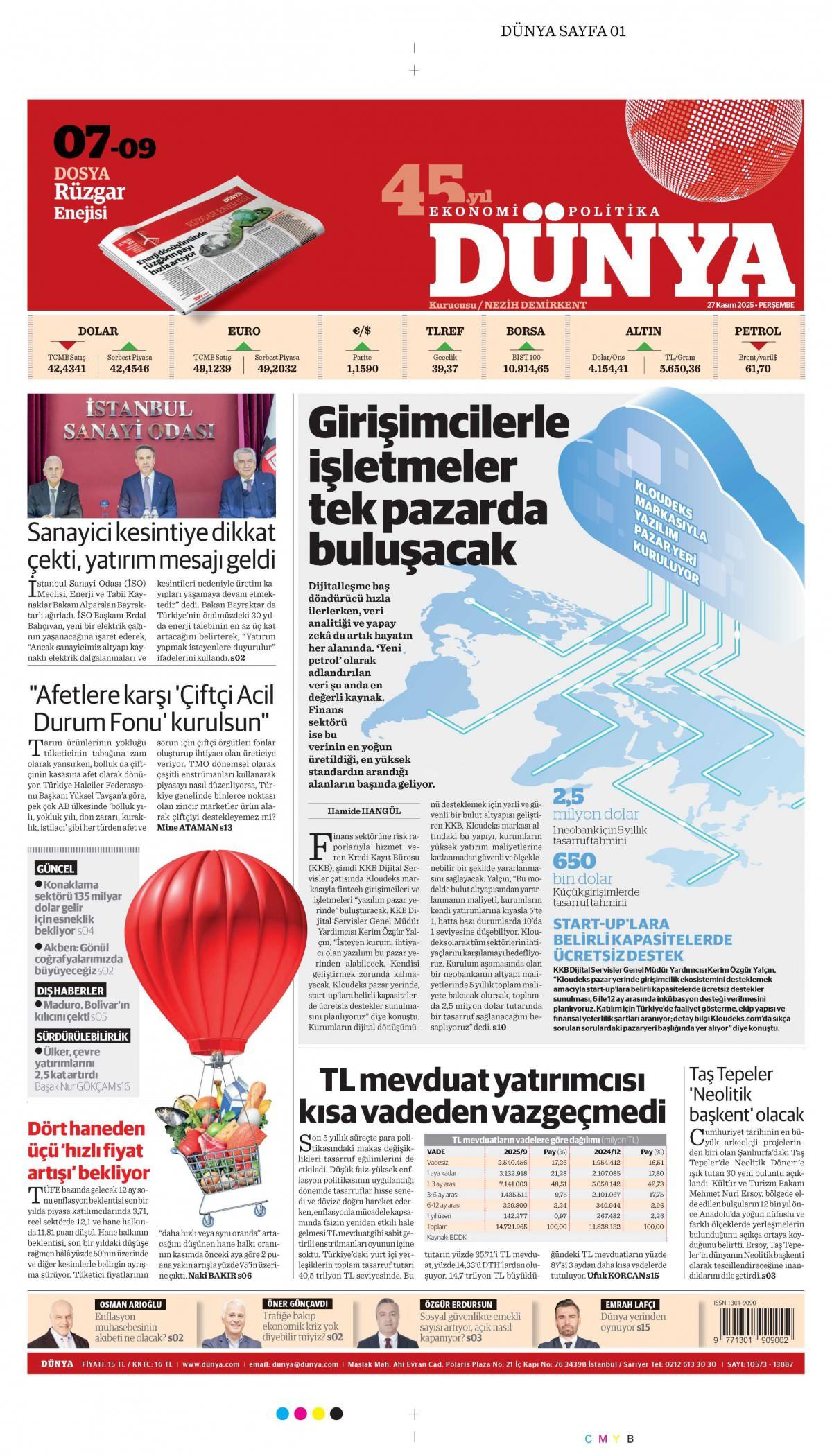 Dünya Gazetesi 28 Kasım 2025 Günü Manşeti