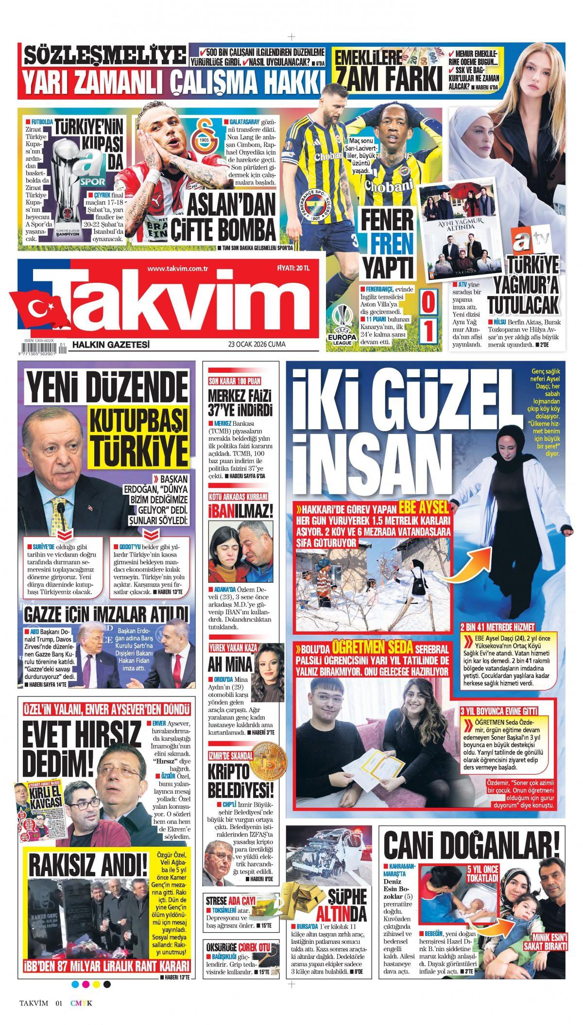 Takvim Gazetesi 23 Ocak 2026 Günü Manşeti