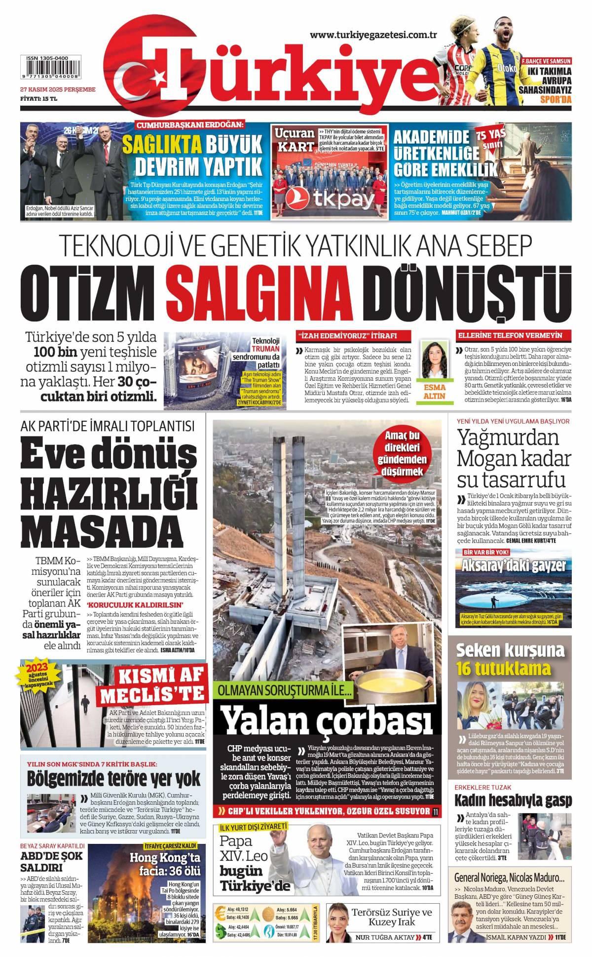Türkiye Gazetesi 28 Kasım 2025 Günü Manşeti